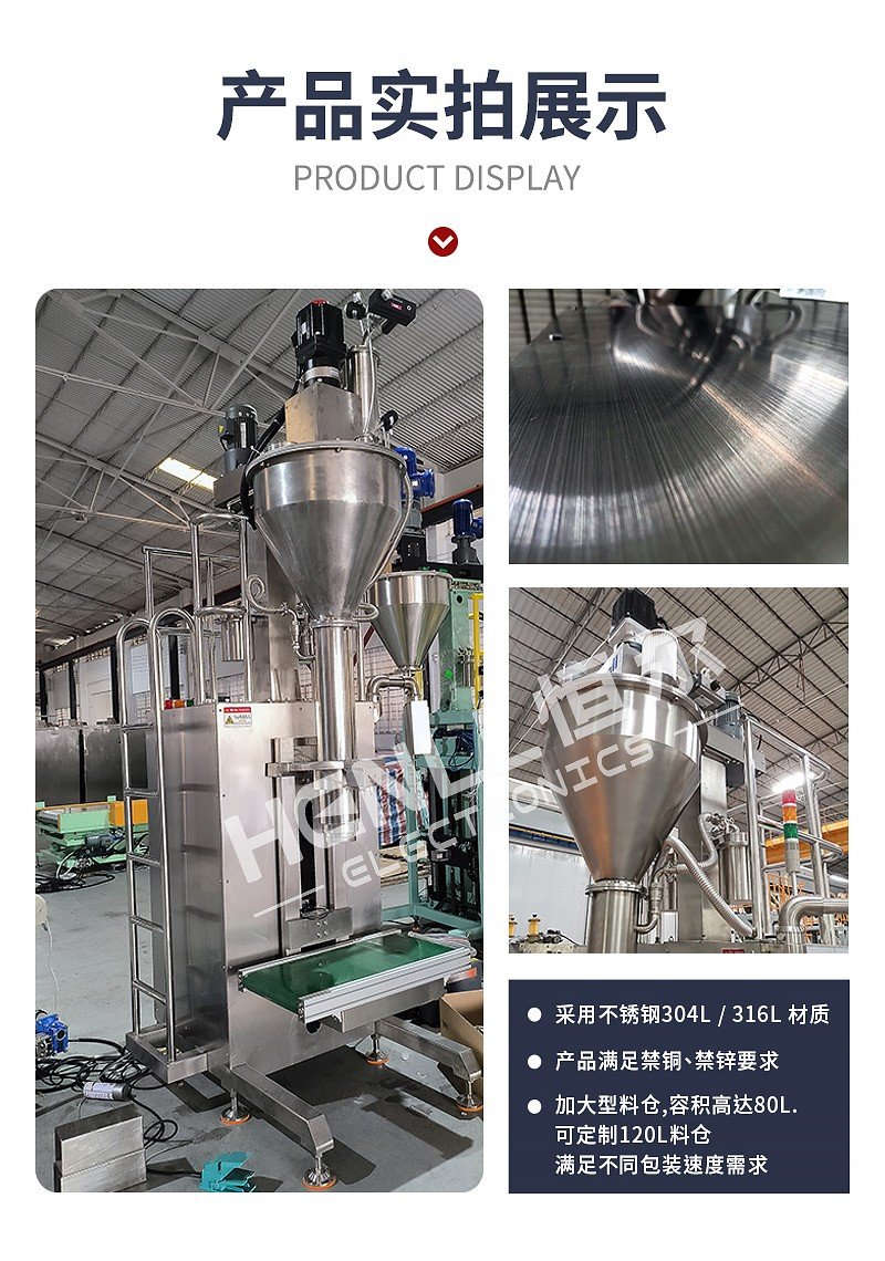 称重:称重斗内置有高精度称重传感器,可以实时测量粉末的重量,并自动调整下料量,确保每袋粉末的净重准确无误。